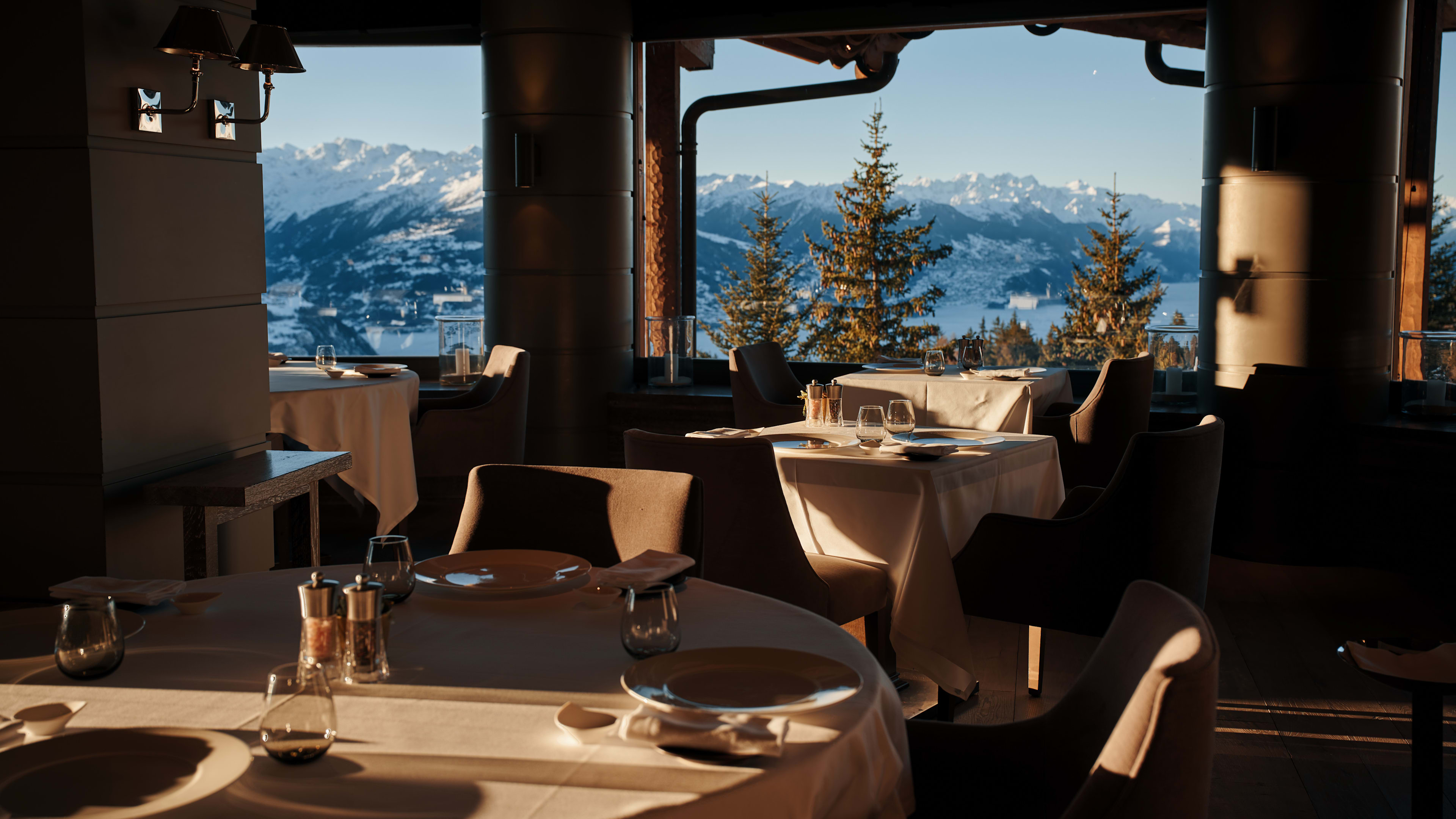 Panoramic views of the snowy surrounds set the scene at LeMontBlanc, the hotel’s formal restaurant, where white linens, candlelight and a baby-grand piano make for ultra romantic Alpine evenings. The menu is French to the core, albeit fashioned with seasonal Swiss produce, meat and seafood. Order the scallops and served-ceviche-style white-fish to start, then split the lobster and John Dory fish (trust us, you’ll want to taste them both). At the back of the restaurant, you’ll find LaTable d’Hôtes overlooking the open kitchen, where guests are guided through a tasting menu served in person by the chef.