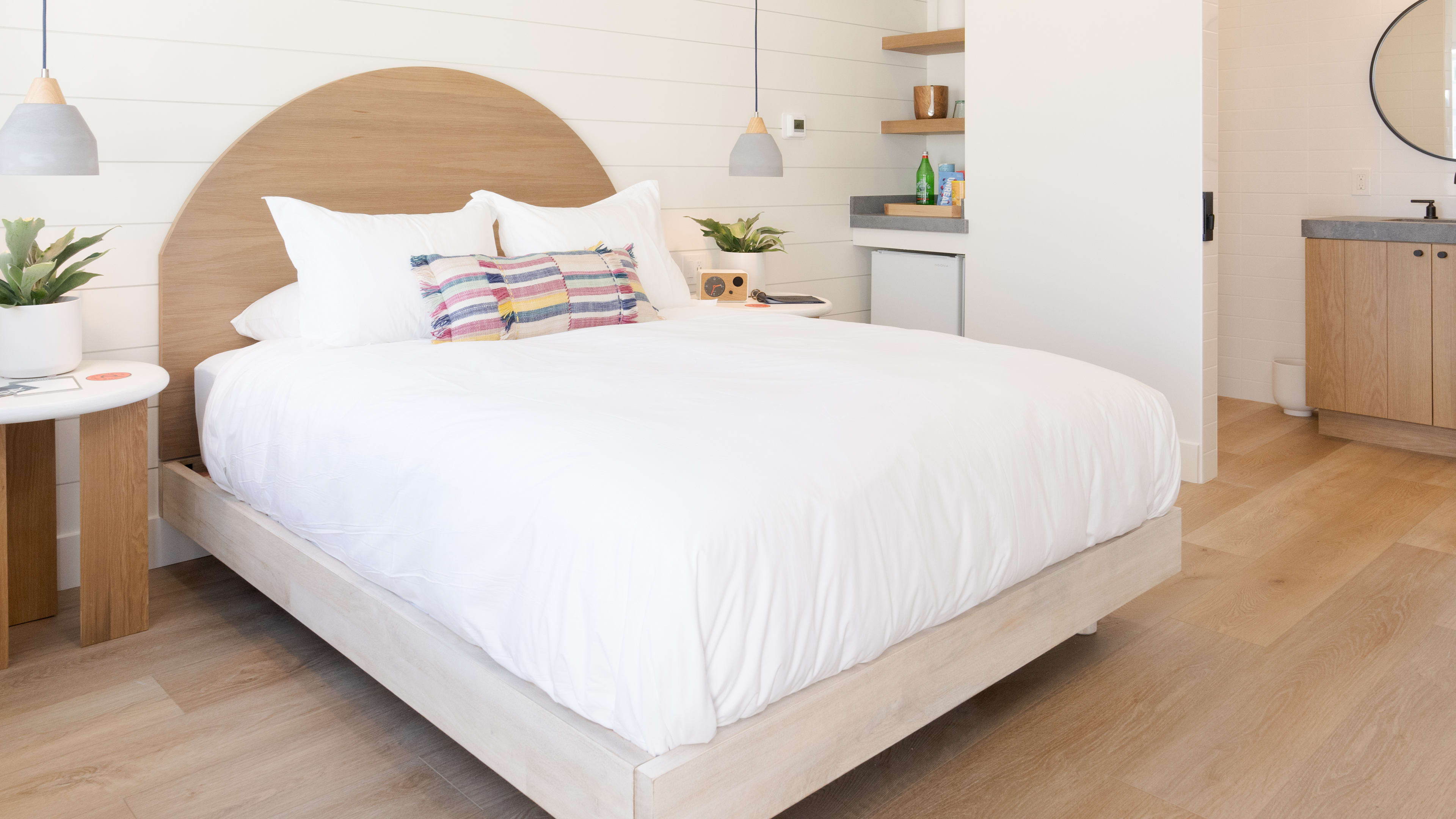 California’s Highway 1 excels in pit-stop perfection, but a particularly worthy one is Cayucos, especially if you pull up outside the Pacific Motel. This motor lodge is formed from bungalows built in the Twenties and moved here in the Fifties, but they’ve since had a fresh lick of paint (Sherwin Williams’ Alabaster White, if you’re wondering) and a modernising influx of clean, simple, Scandi style. It’s a block back from the beach, for some surfin’ USA in the Pacific – after you’ve caught some waves, continue the laid-back lifestyle at the fire pits or in one of Cayucos’s handful of restaurants.