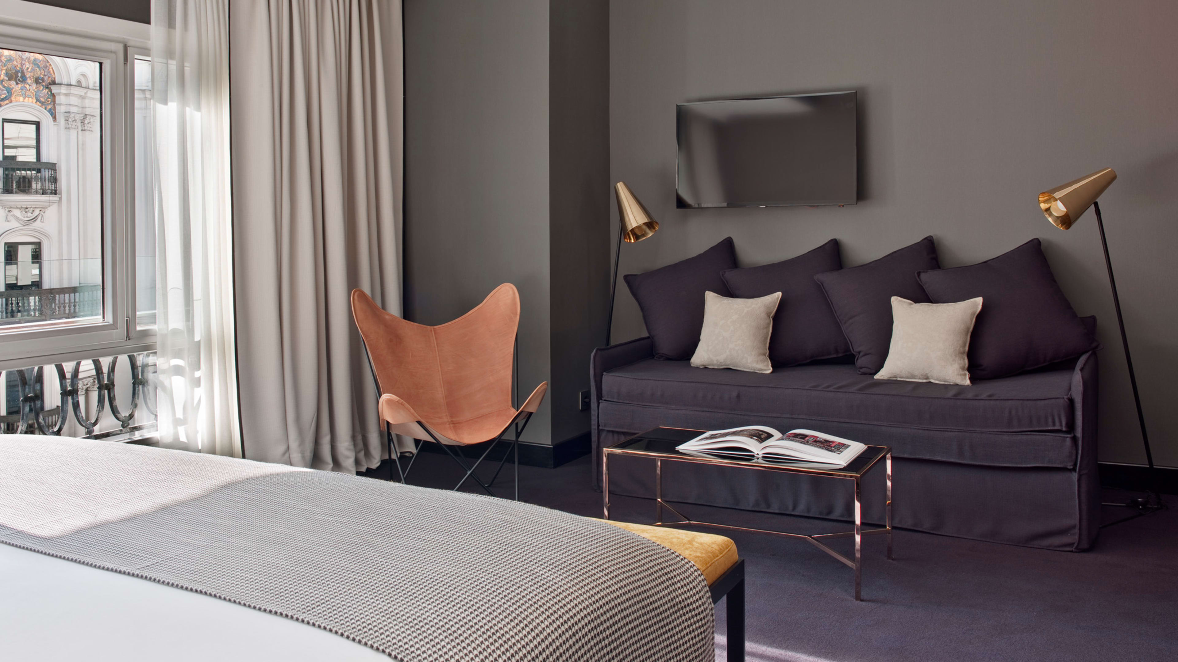 Madrid’s ever-blue skies make a table on the slim terrace practically compulsory; in winter, cosy up by the fire with an afternoon tea.