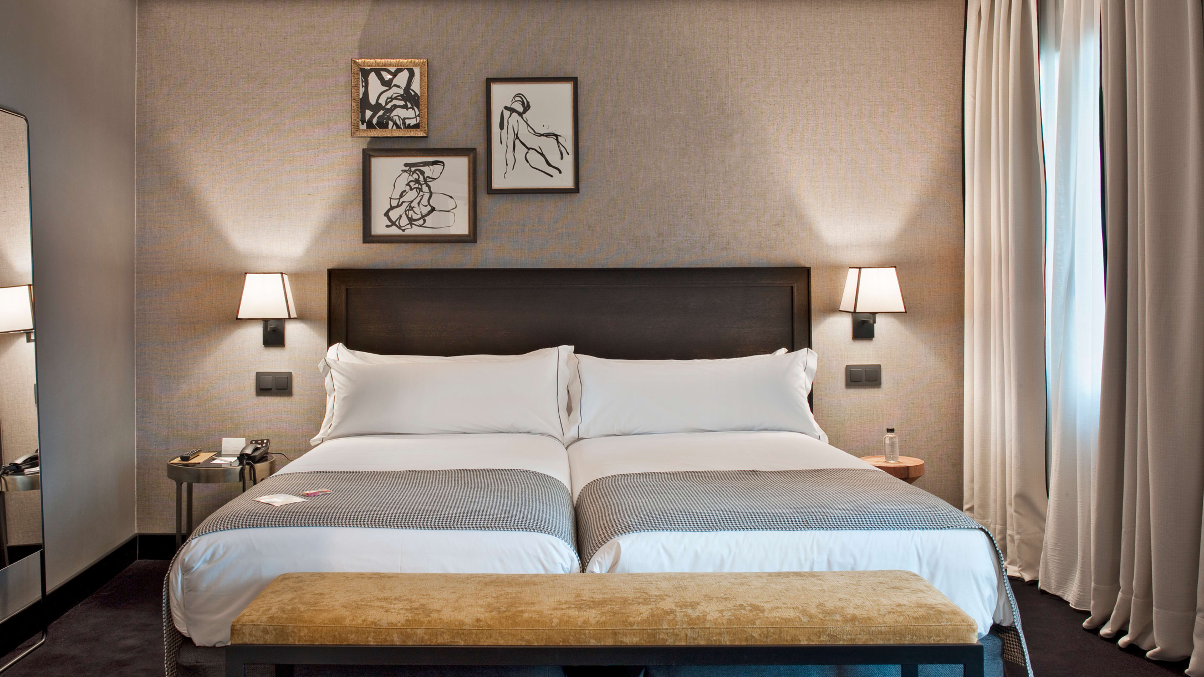 Touch down at Madrid–Barajas airport, an international hub about 40 minutes’ drive from the hotel. Taxis are readily available and cost about €30, but you can also catch the metro from the terminals, which will whisk you directly to the Príncipe Pío station close to the hotel in about 20 minutes.