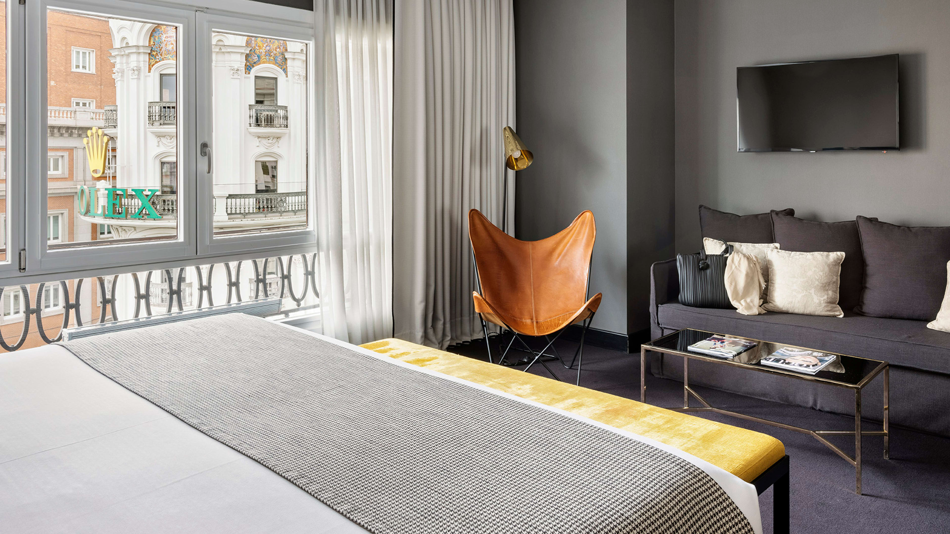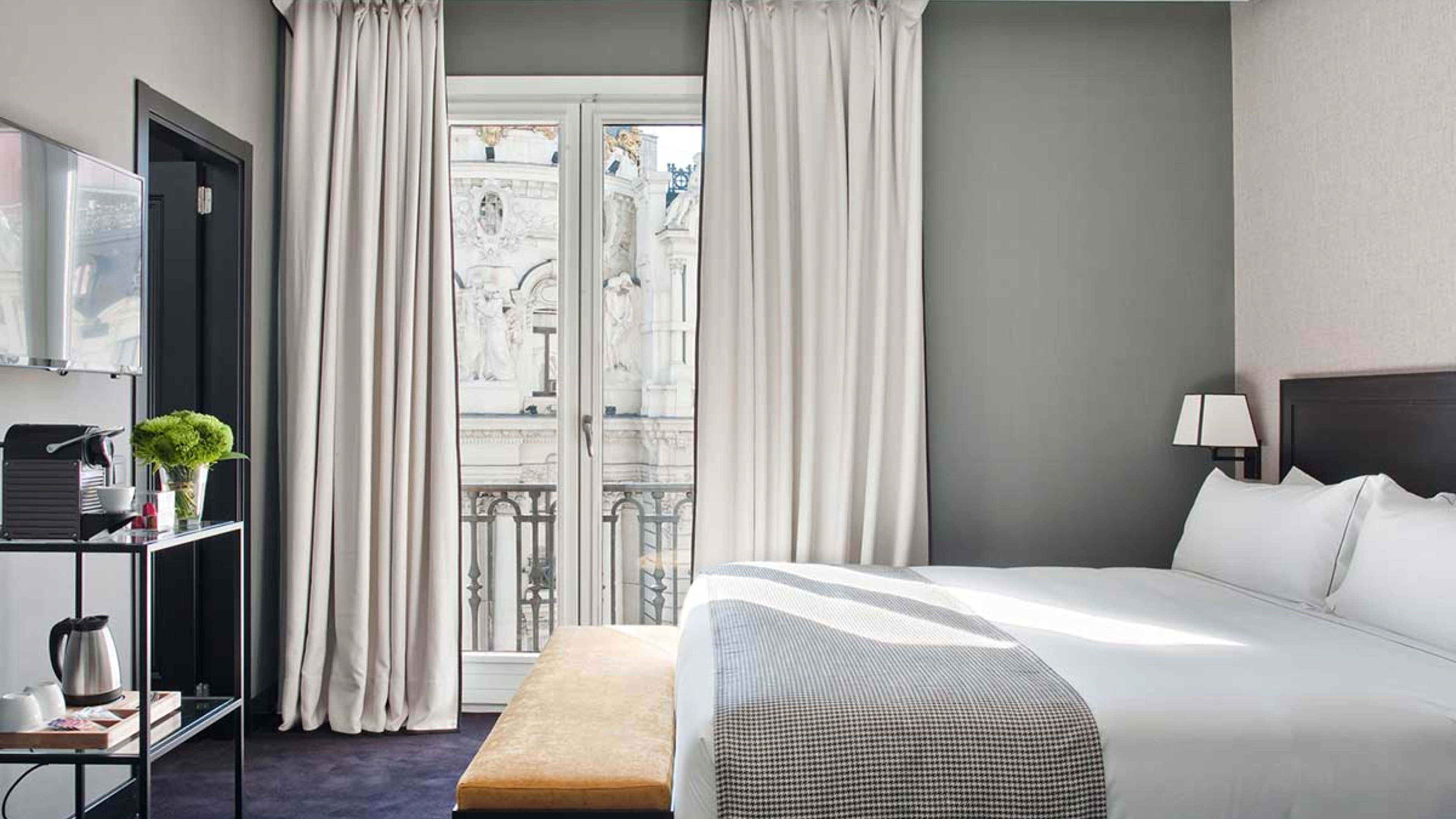 Slim, stackable luggage will be just the right fit for Principal Madrid’s tiny old-world lifts – but leave plenty of space for Gran Via purchases.