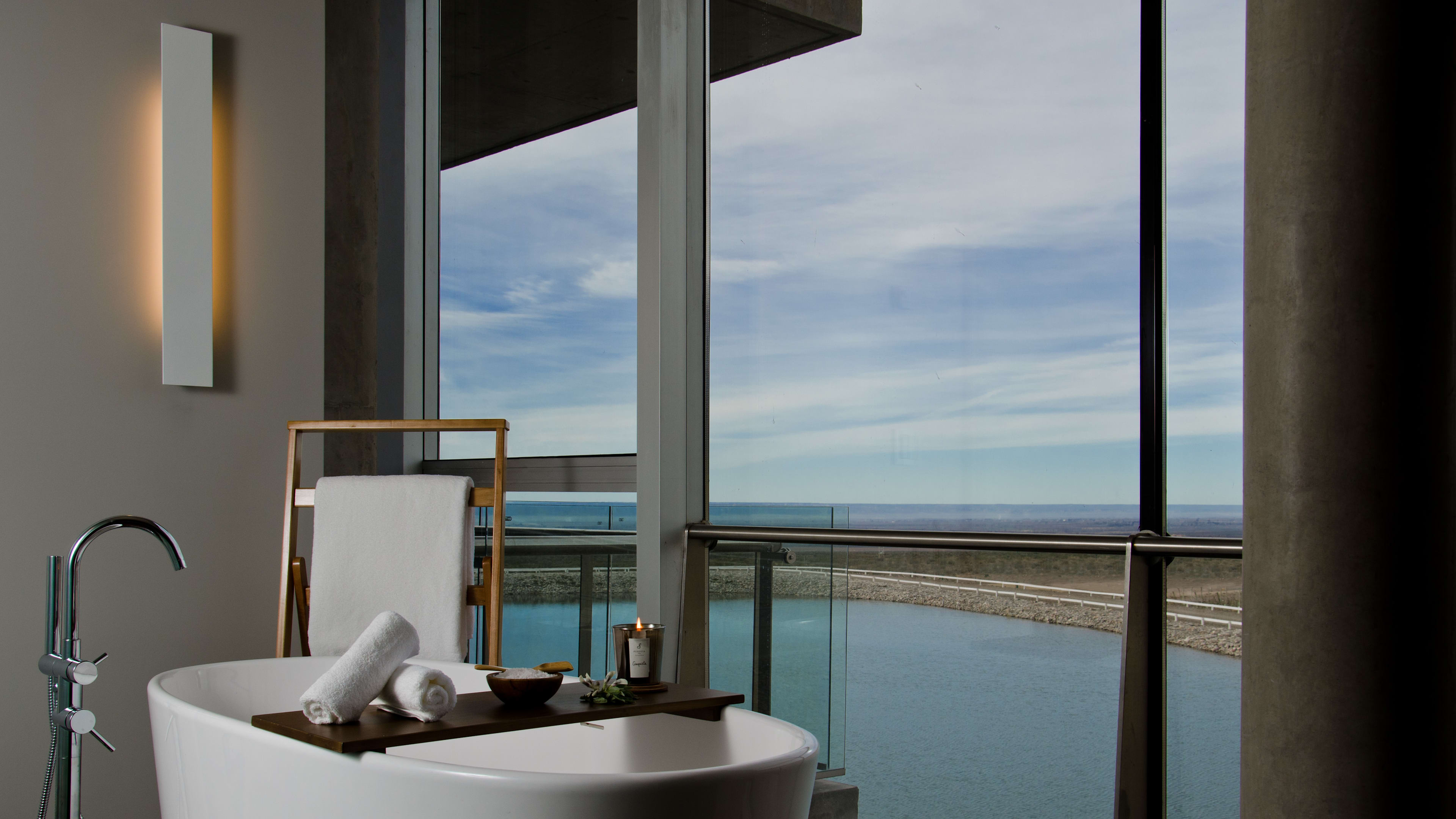 The hotel’s remote setting makes driving necessary, but you’ll be rewarded with emerald- or ochre-tinged views, depending on the time of year, and mighty mountain-topped vistas. From the airport, reach the hotel via National Route 40, Route 92 then Route 94. There’s free parking at the hotel.