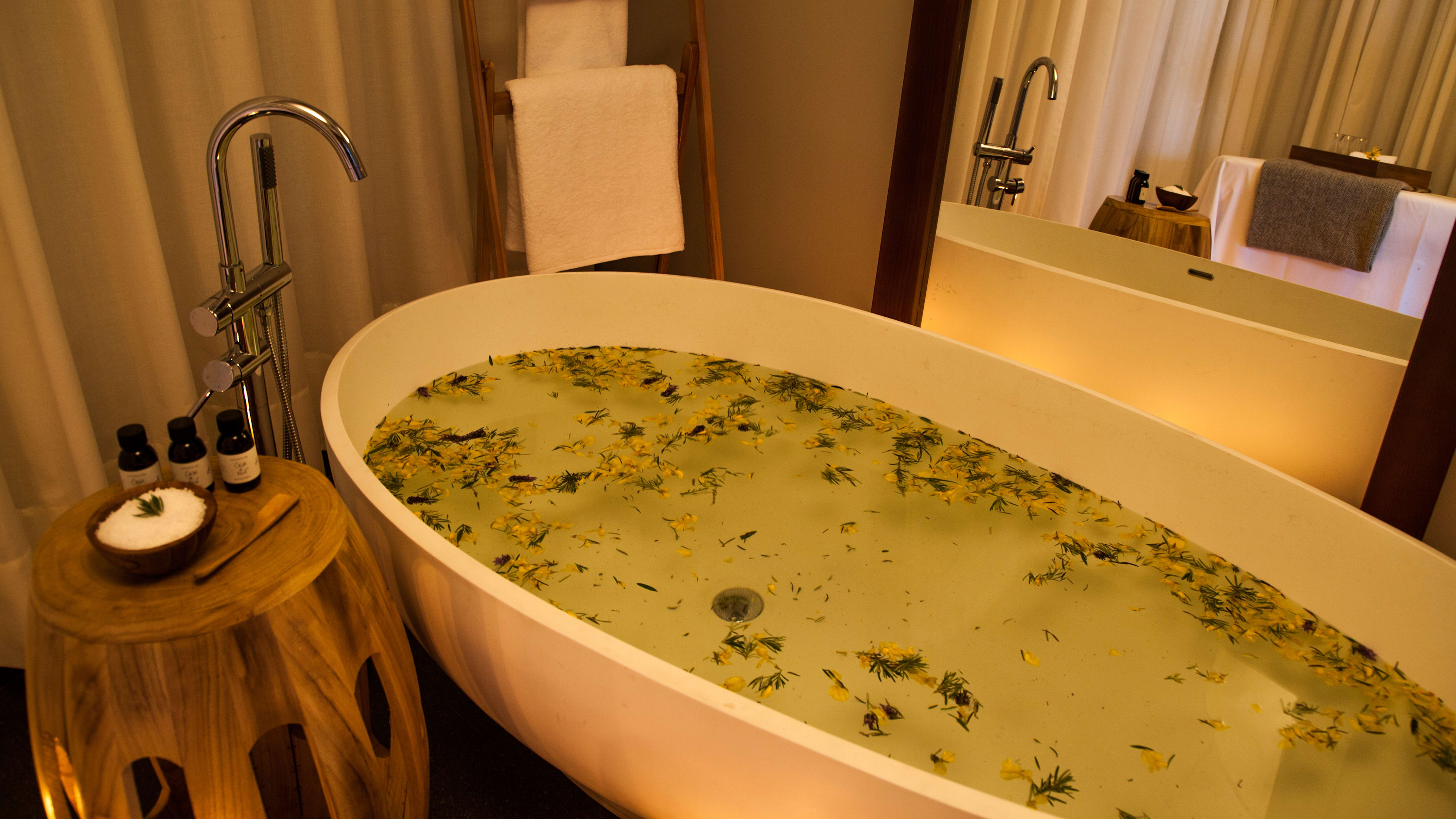 The lagoon-facing rooms on the top floor have a glass frontage for full-on scenery. There’s a private balcony too, and the sleek modern bath tubs (they’ll fit two if you don’t mind a close encounter) are right by the floor-to-ceiling windowpane. There’s a curtain if you’re feeling shy. The concrete-and-steel Bungalows look like villas from the future, with Corbusier-esque clean-cut modernism and rooftop Jacuzzis.