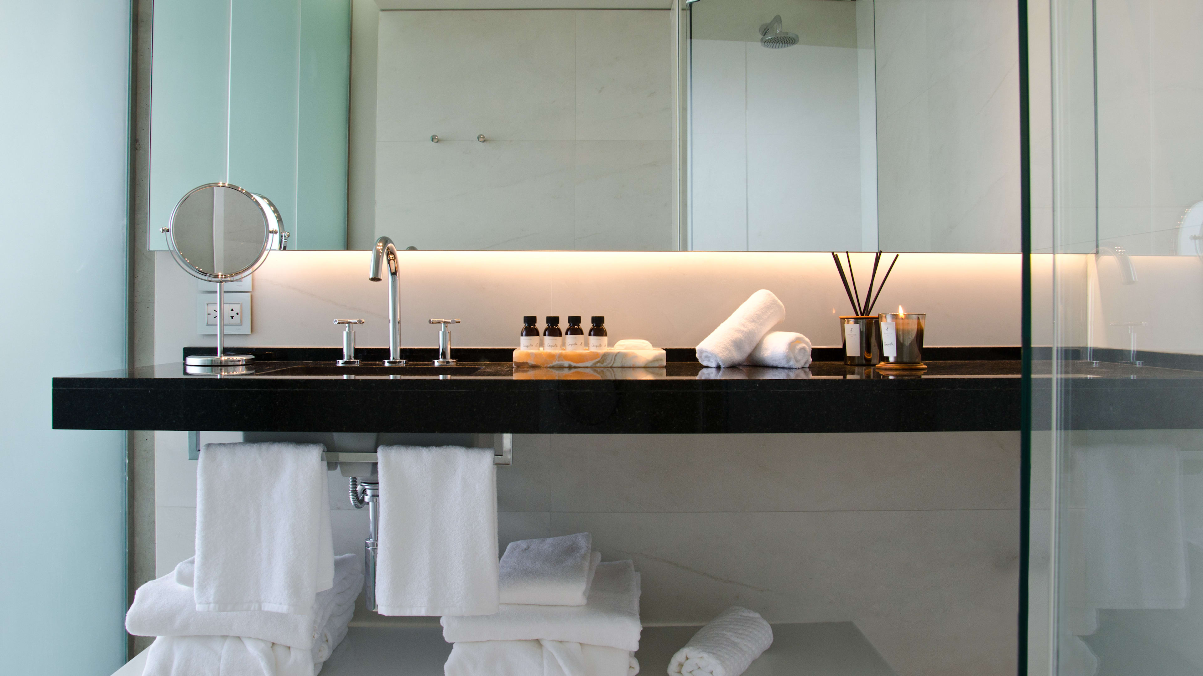 The full menu is available during restaurant hours. If you need a late-night pick-me-up, a bartender will shake up a cocktail of your choosing and bring it straight to your door.