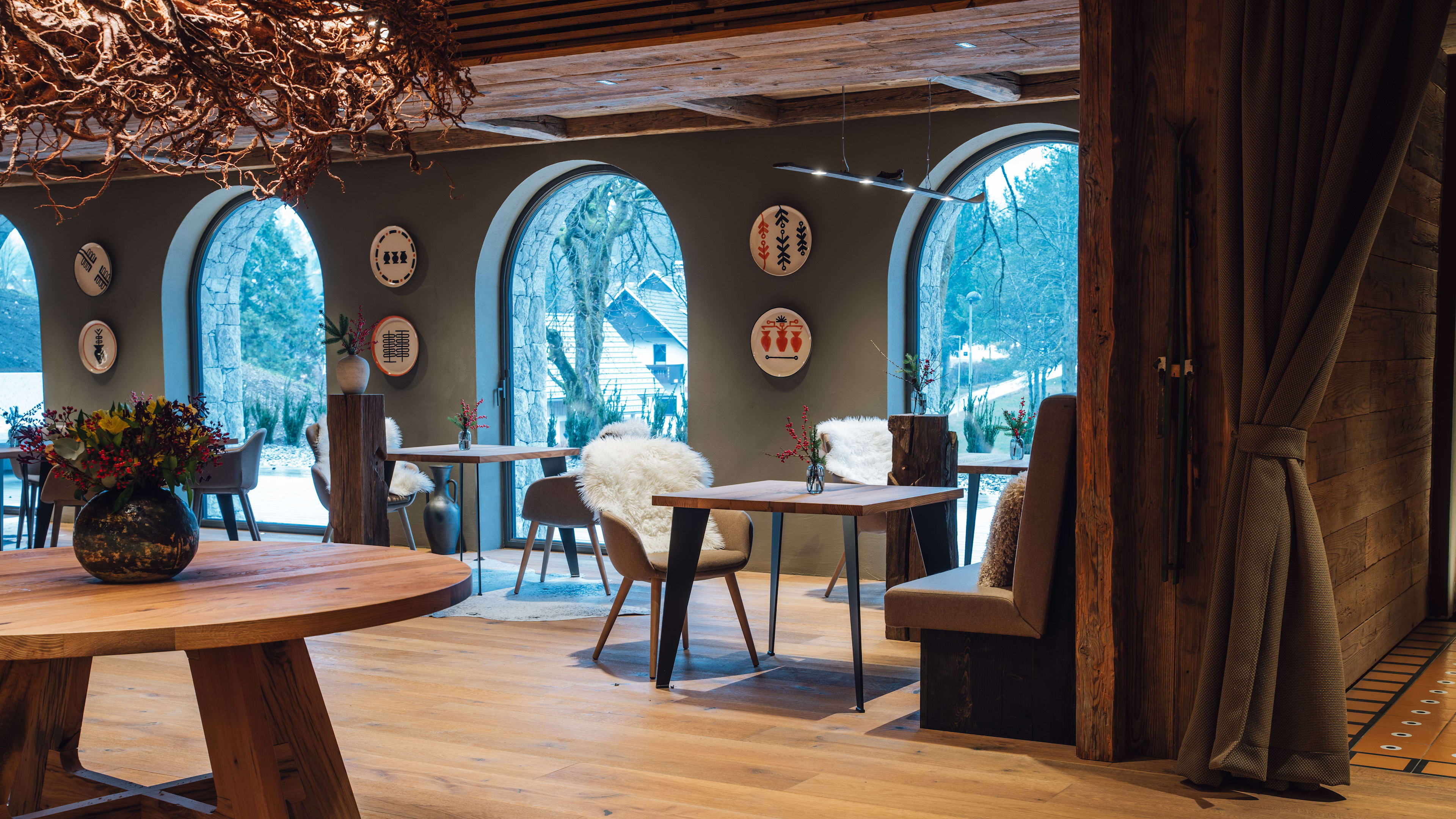 A cosily lit, timbered dining room, draped with faux furs and decorated with wall-mounted antlers, sets the rustic scene for a celebration of Alpine cuisine at Muhr — the hotel’s soon-to-open fine-dining restaurant. Chef Davor Arnautović will oversee seasonal plates that showcase regional produce, presented with contemporary attention to detail. For breakfast, there’s an impressive choice of dishes cooked to order, as well as a buffet of healthier, lighter options and baked goods. Talking of which, afternoon tea next door at Hotel Bohinj is an elegant affair of dainty cakes and slow-steeped, loose-leaf brews.
