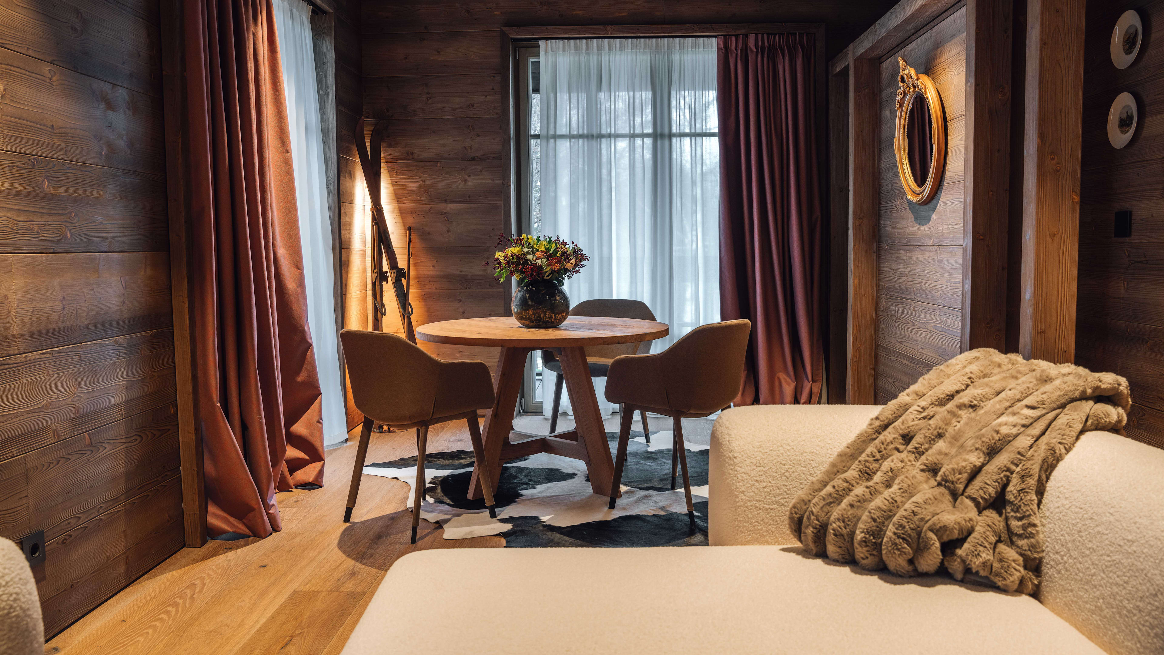 With four high-spec suites — each a timbered triumph of modernity, tactile layering and mountain-backdropped outdoor space — to choose between them is surely hair-splitting. It’s worth noting, however, that the top-floor suites don’t adhere to the traditional notion of having a separate bedroom and living space, but do earn bonus romance points for their in-the-eaves setting. Let the differing bathroom set-ups be your compass, leaving you the enviable dilemma of whether to choose a private sauna or statement tub.