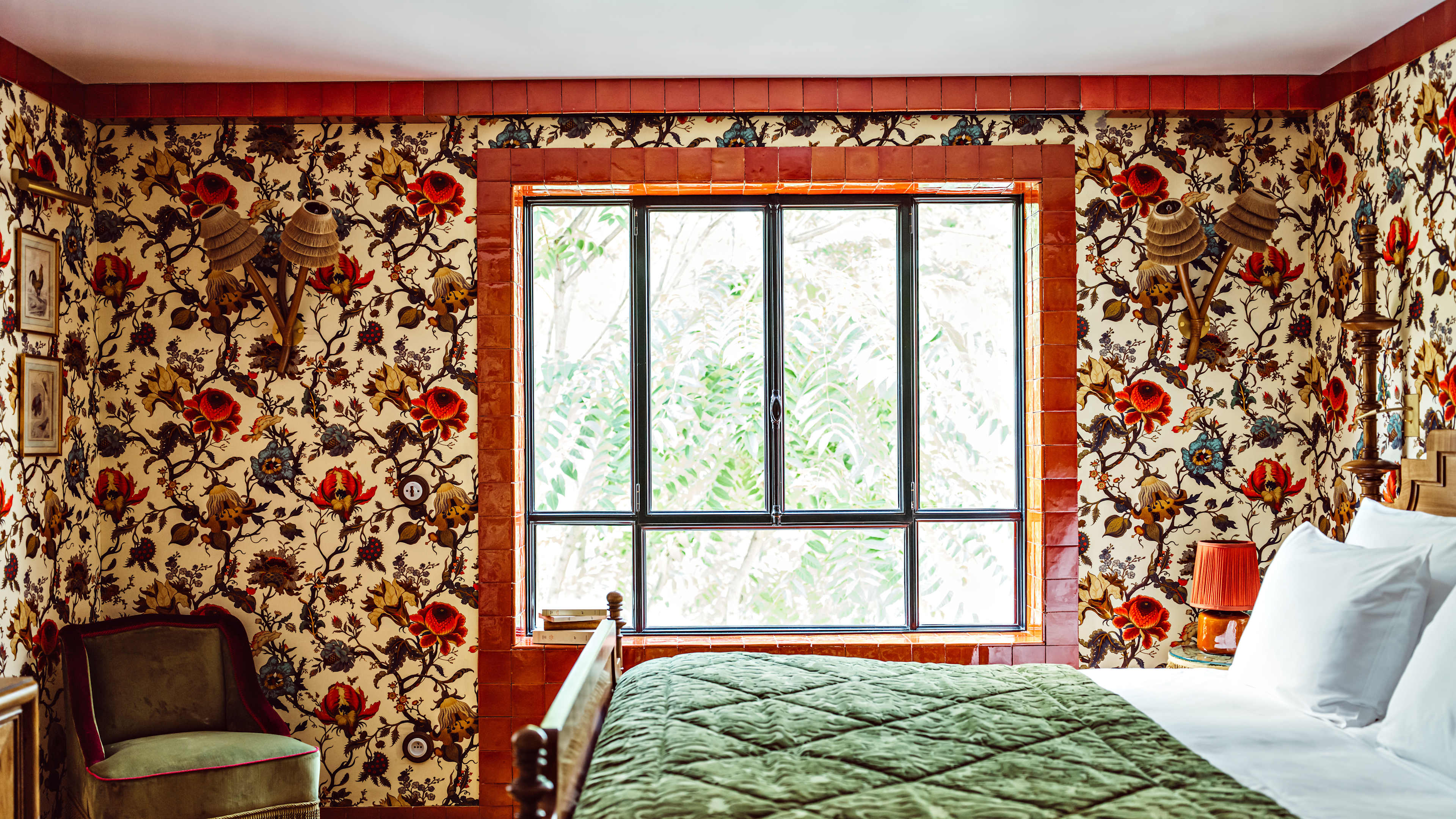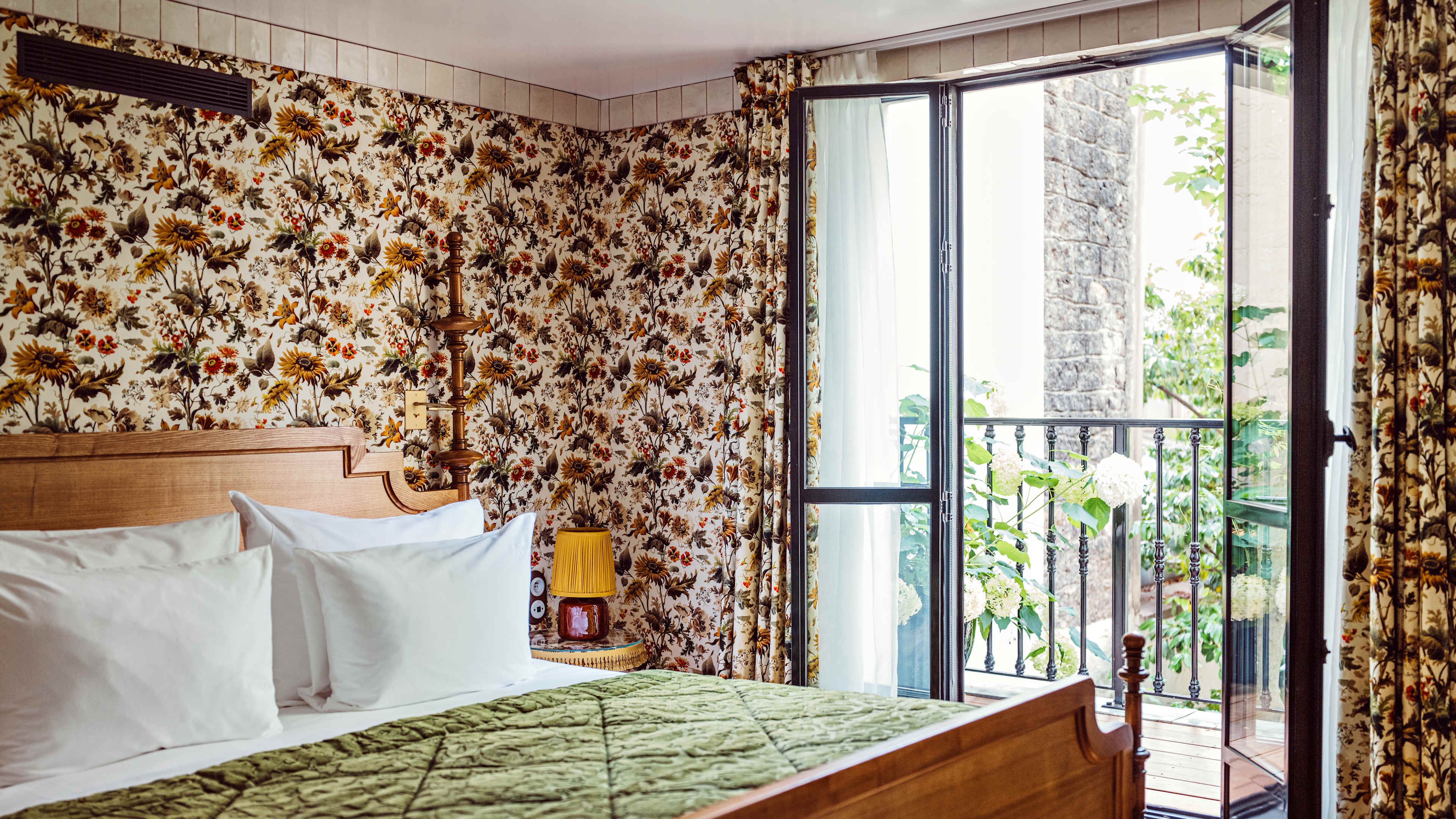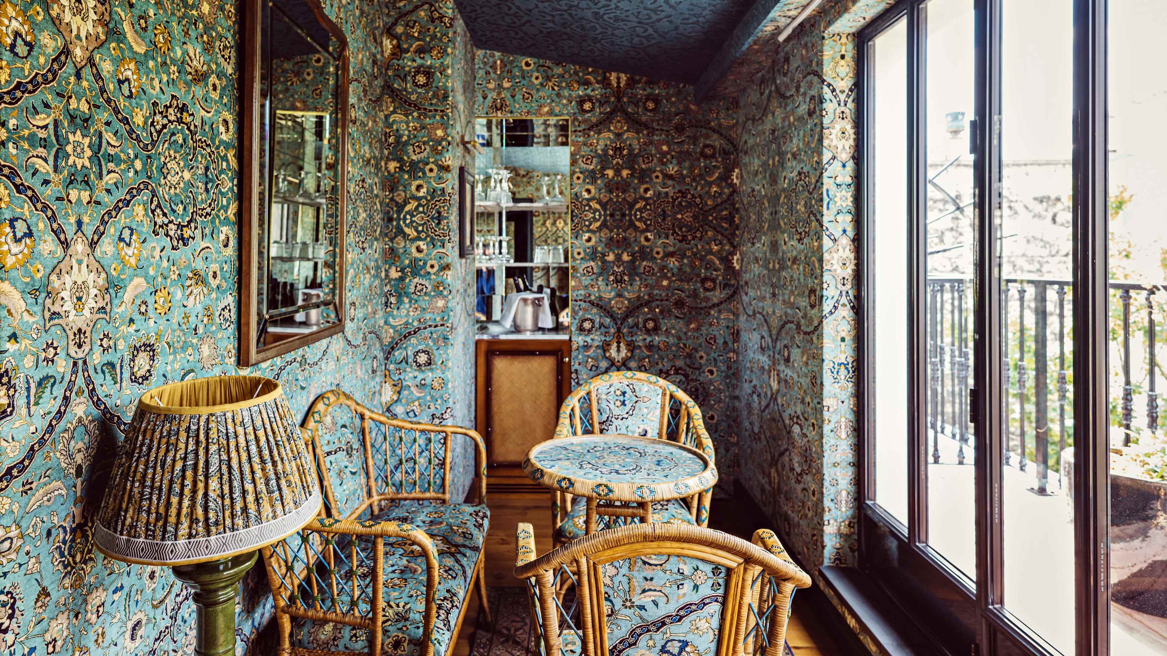 Maximalism is truly taken to ‘the max’ here, with florid florals and mix-and-match furnishings from various eras (Victorian hangings, Twenties lights, Sixties latticework cabinets), and patterned-velvet wallcoverings and House of Hackney wallpapers that sometimes envelop the ceilings, too. Rooms and suites from the Terrace up all have outdoor space, for a breather if the busyness overwhelms.
