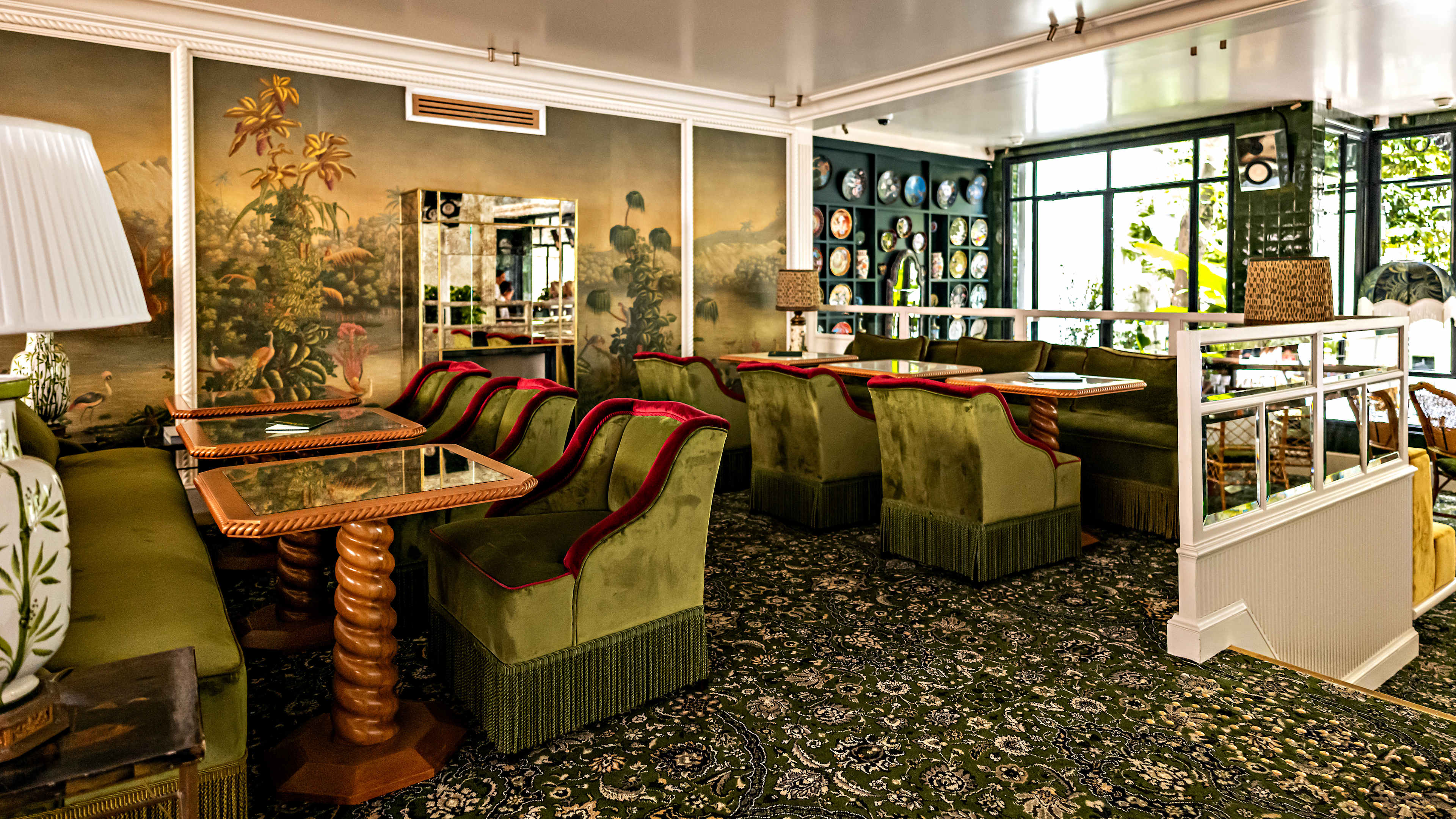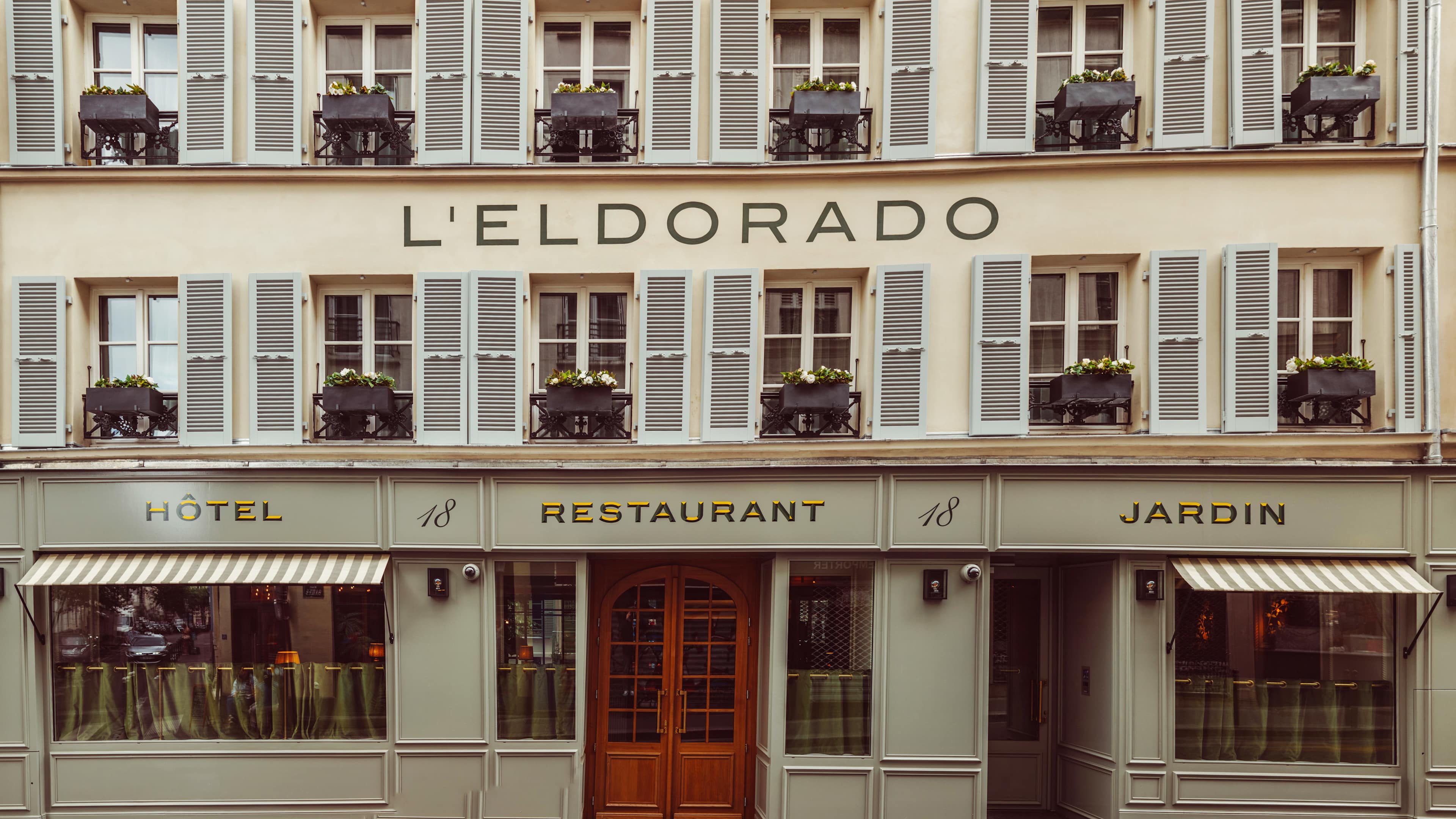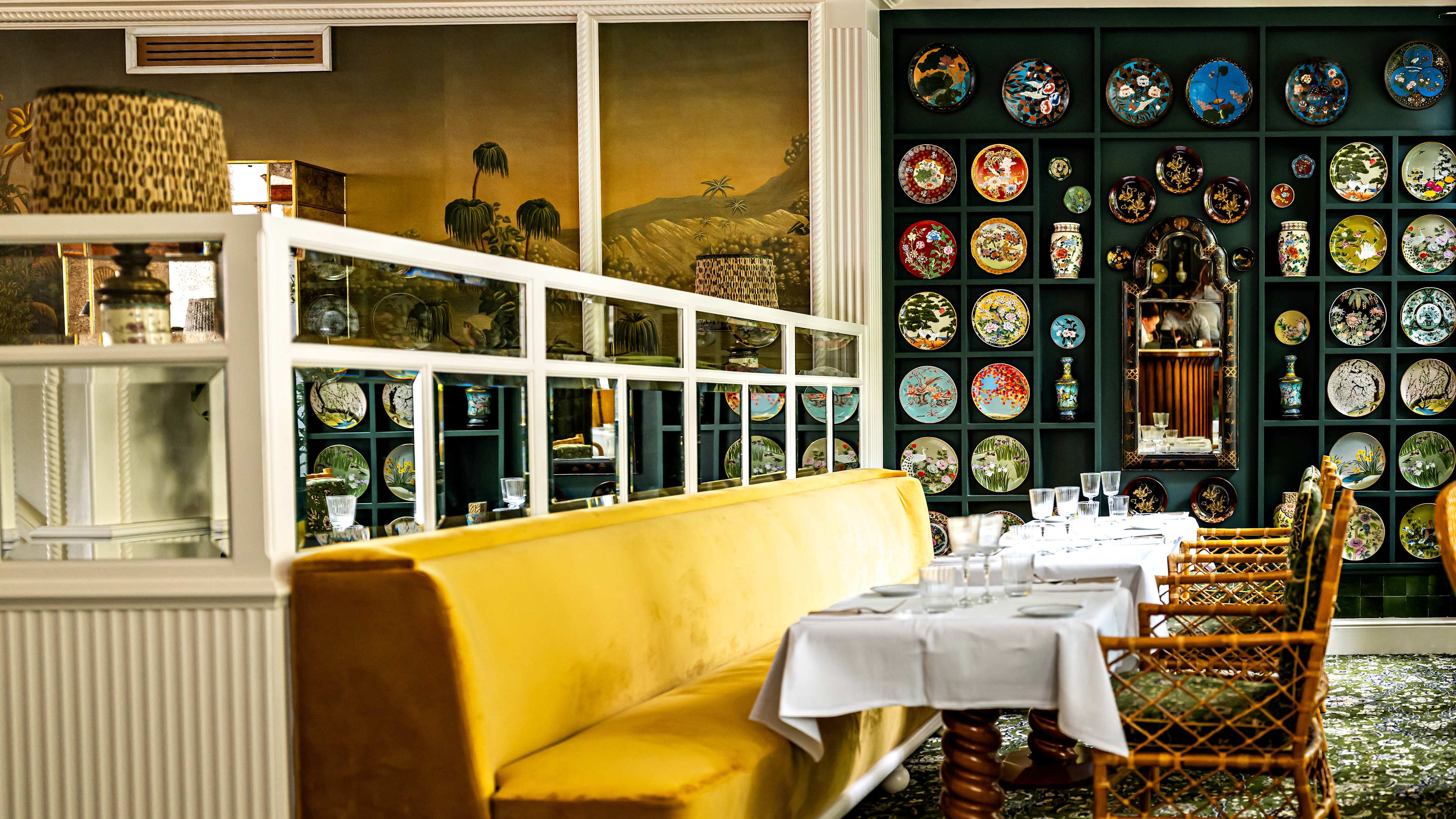 L’Eldorado’s restaurant offers the rare opportunity to dine amid palms, hydrangeas, roses and wisteria in its secret (but not for long) garden. The indoor dining space is rather flowery too, with its botanical prints and mural wallpapers, colourful plates on display and vine-entwined chandeliers; and large windows bring the outside in as well. The service might be silver and the wait staff well-attired, but dining is fairly casual, with small plates (eggs mimosa, trout rillettes, oysters, seasoned snails…) and more substantial – largely sea-to-plate – eats: sea-bass fillet in parsley sauce; sole meunière; vol-au-vents stuffed with clams, asparagus and lemon; beetroot tartare, plus fillet steak with dauphinoise potatoes, lemon-y chicken and mushroom-stuffed omelettes. To follow, think mille-feuille, clafoutis, coupes and glaces.