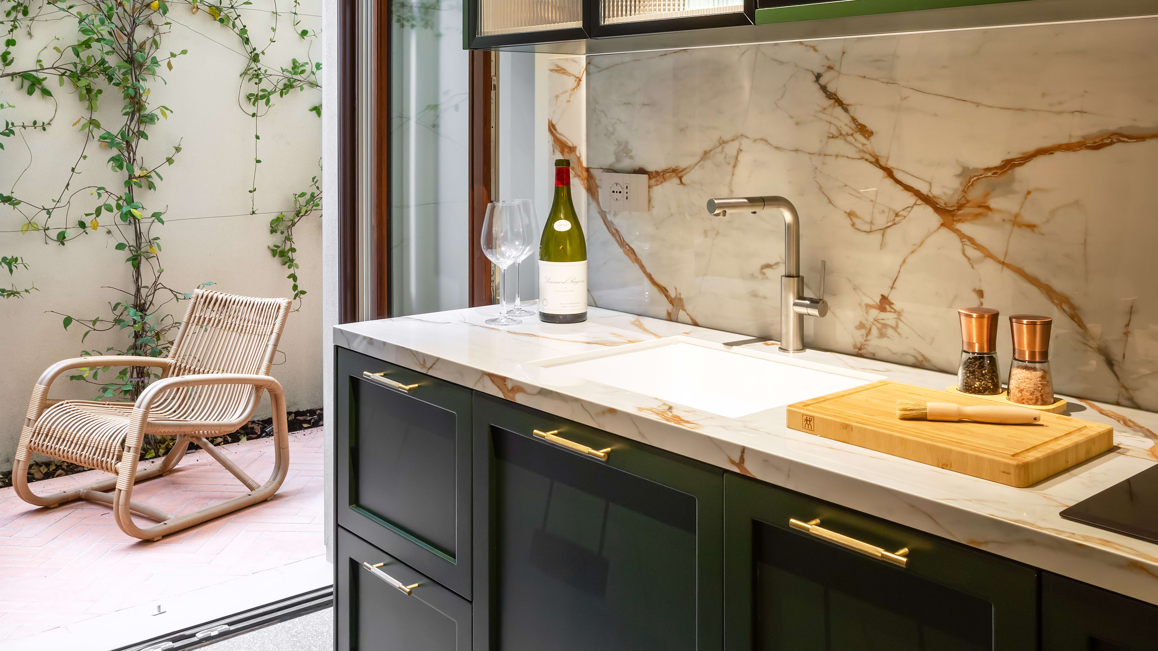 A trusty tote for stuffing with produce at the local market, and an apron to don in the tricked-out kitchen (useful whether you’re baking a fresh batch of cantuccini, or skipping straight to the part where you dunk them in a glass of vin santo).