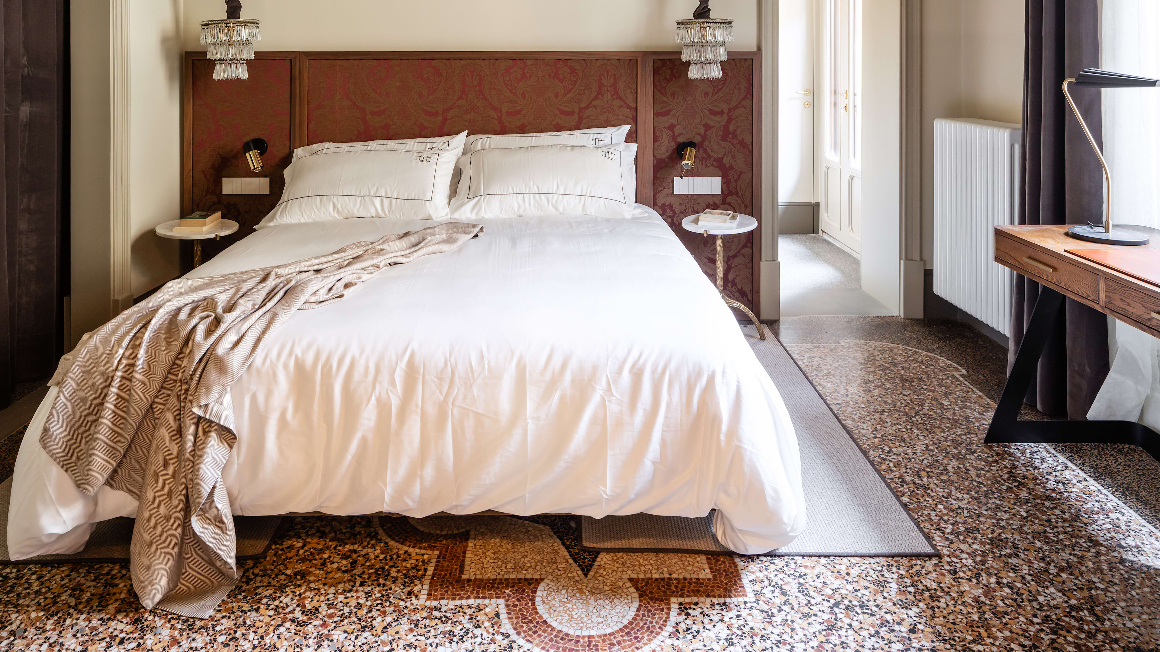 The hotel’s art collection ranges from an imposing Mannerist masterpiece by Jacob de Backer to a rare Dali lithograph, an atmospheric Antoni Tàpies collage, and Franco Gentilini’s commedia dell’arte characters scattered across the building – Uffizi who?