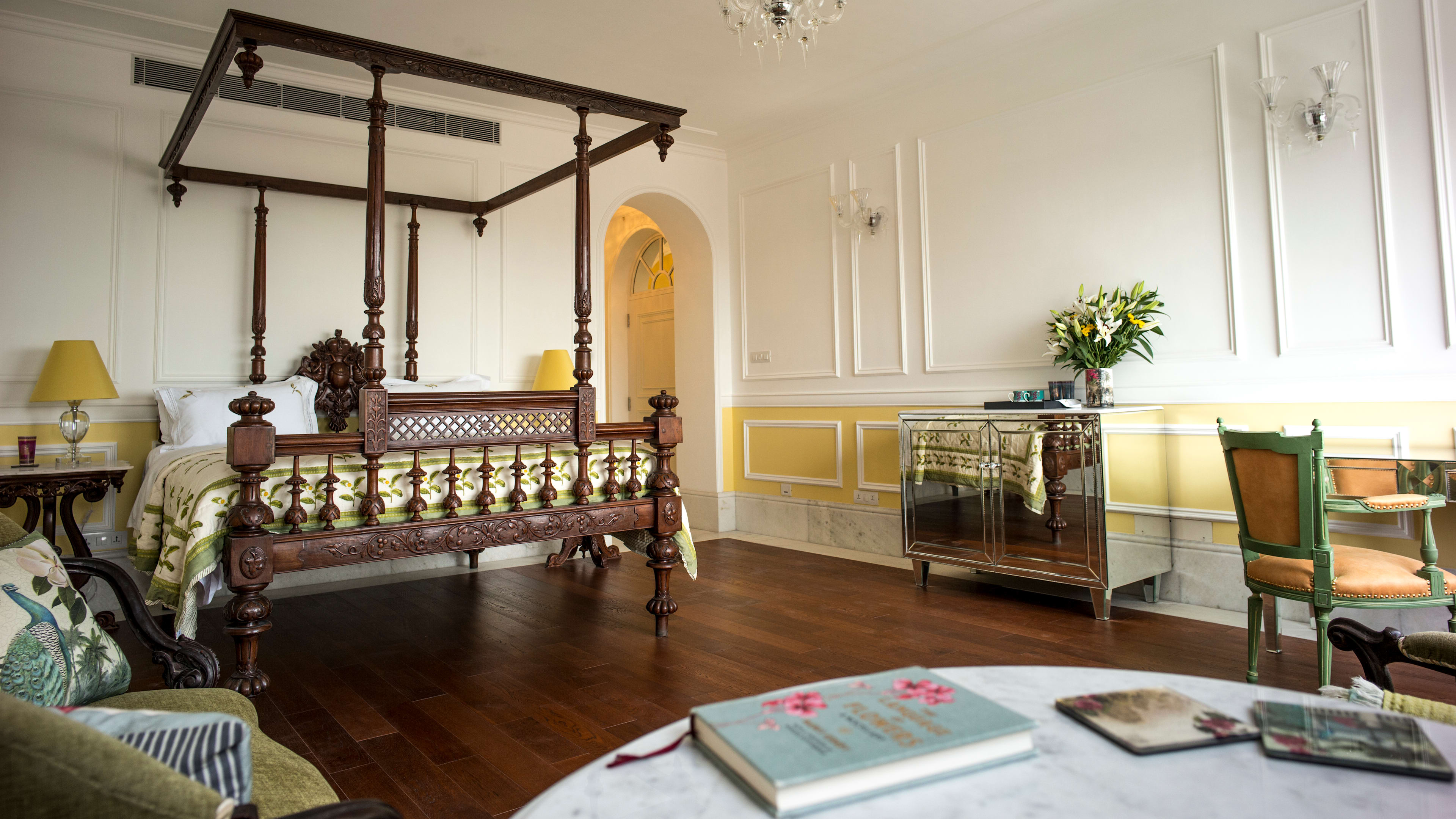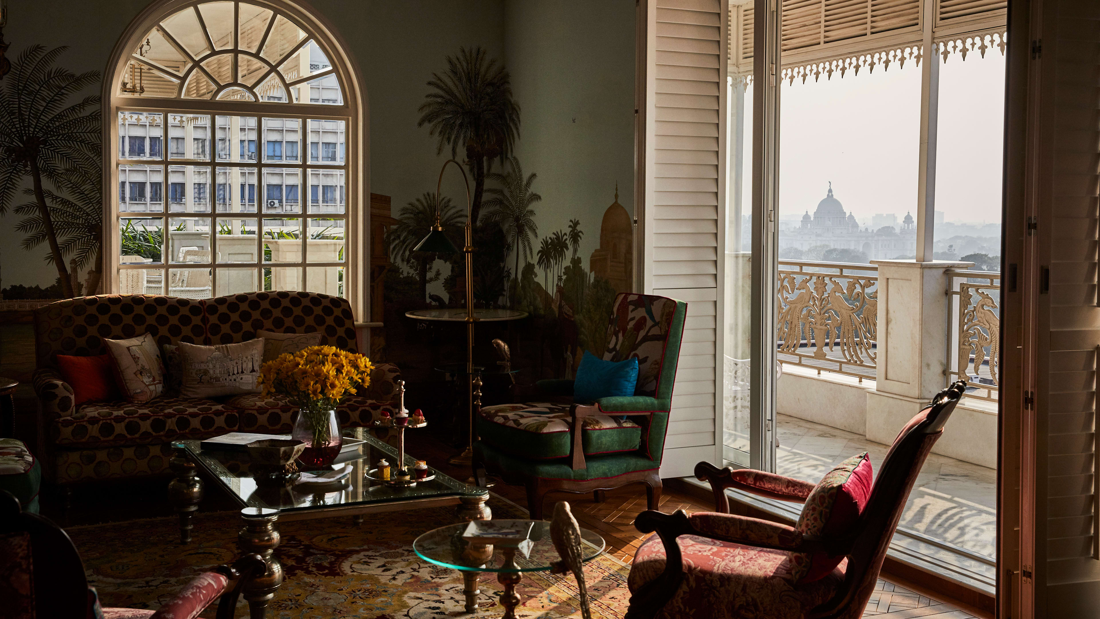 Each room has elegant colonial-inspired accents: arched doorways, wall-panelling, carved antique four-poster beds and crystal chandeliers. For a veranda with views of the Victoria Memorial, go for the Maidan Suite (Room 2). The Victoria Suite (Room 1) also looks out across the famous marble monolith.