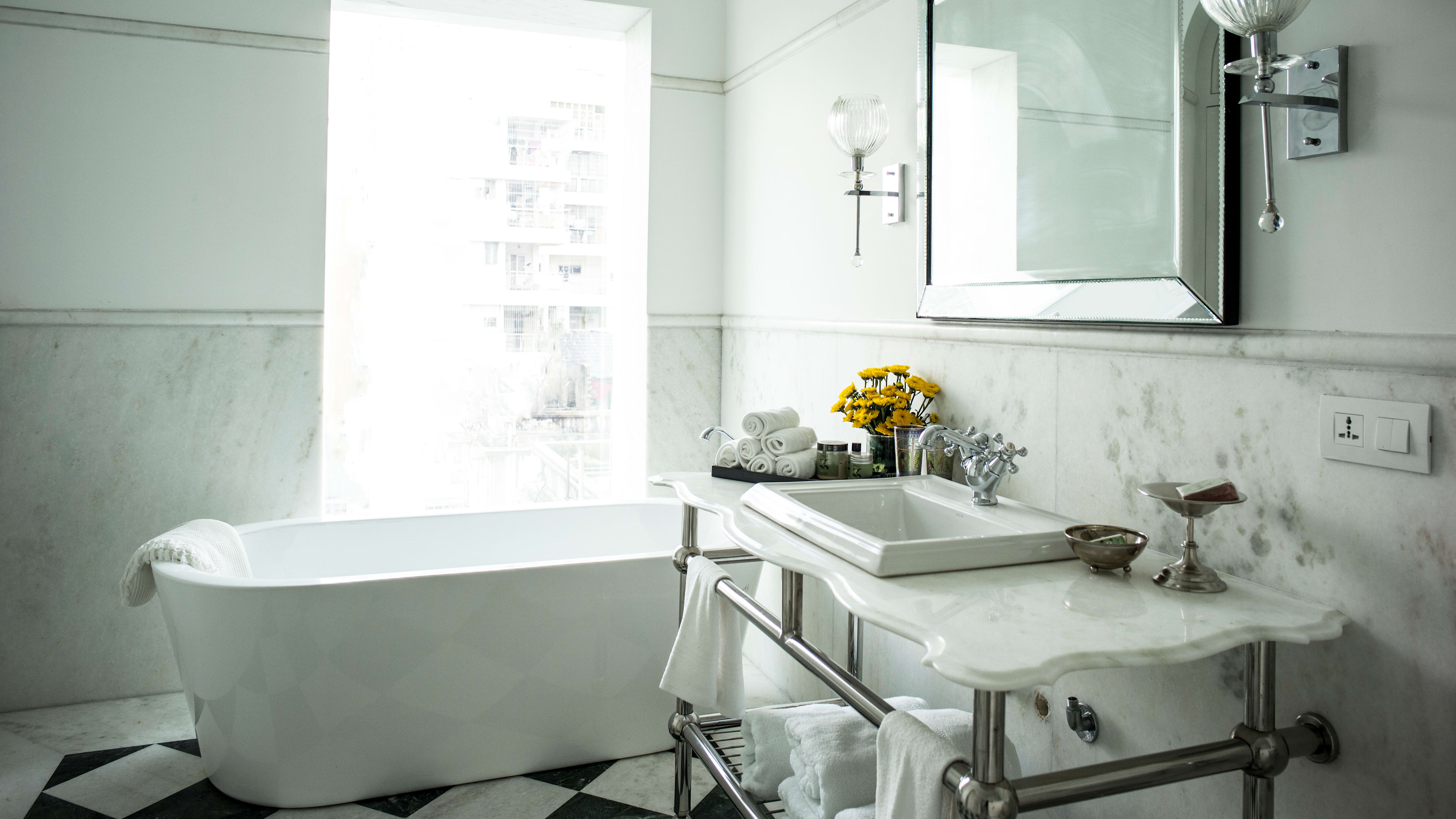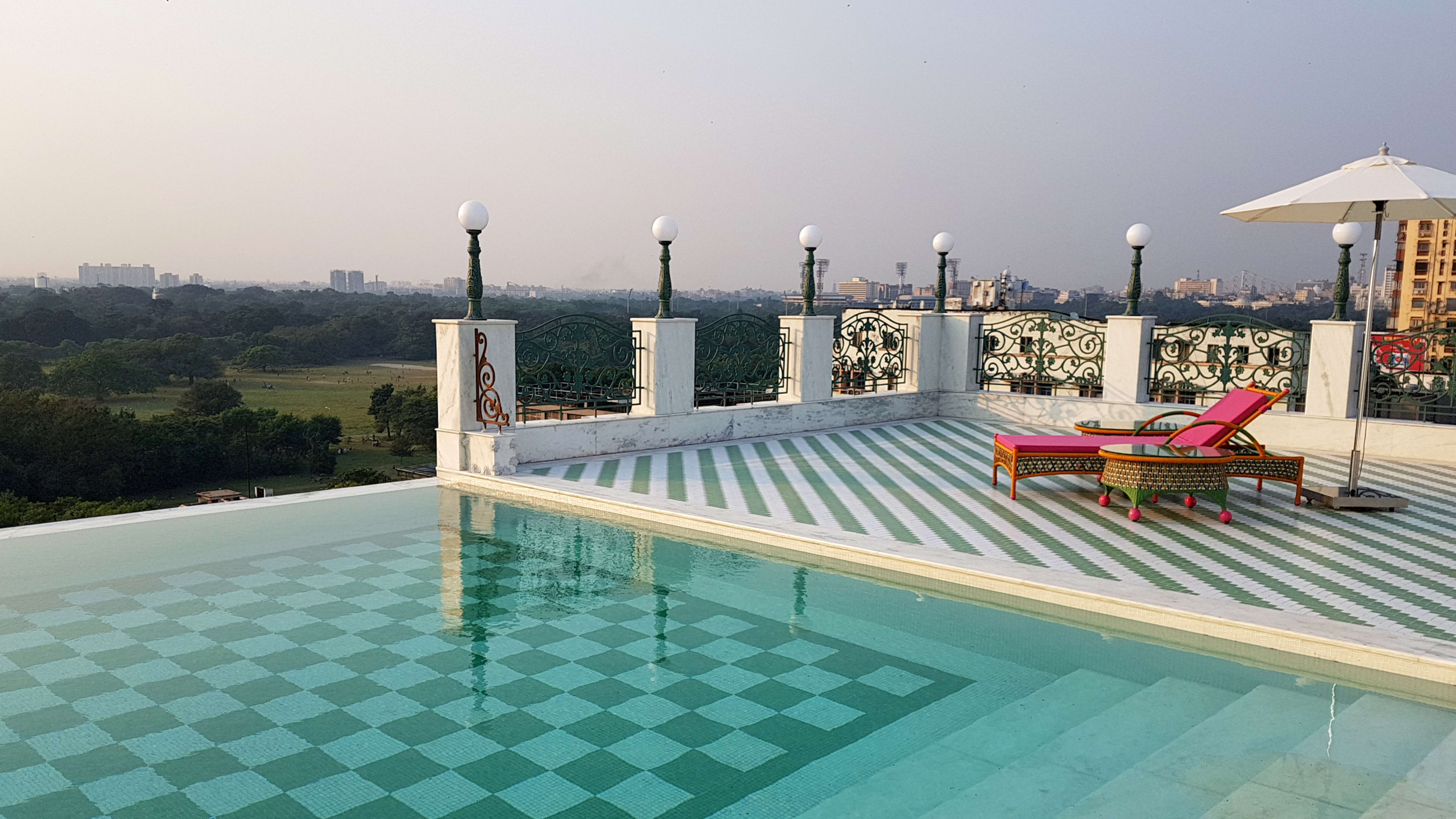 The rooftop infinity pool is open between 6am and 6pm, with a drinks service available. It’s got fuchsia sunloungers, wrought-iron railings and checkerboard tiles – plus, far-reaching views out over the Maidan and the Victoria Memorial.