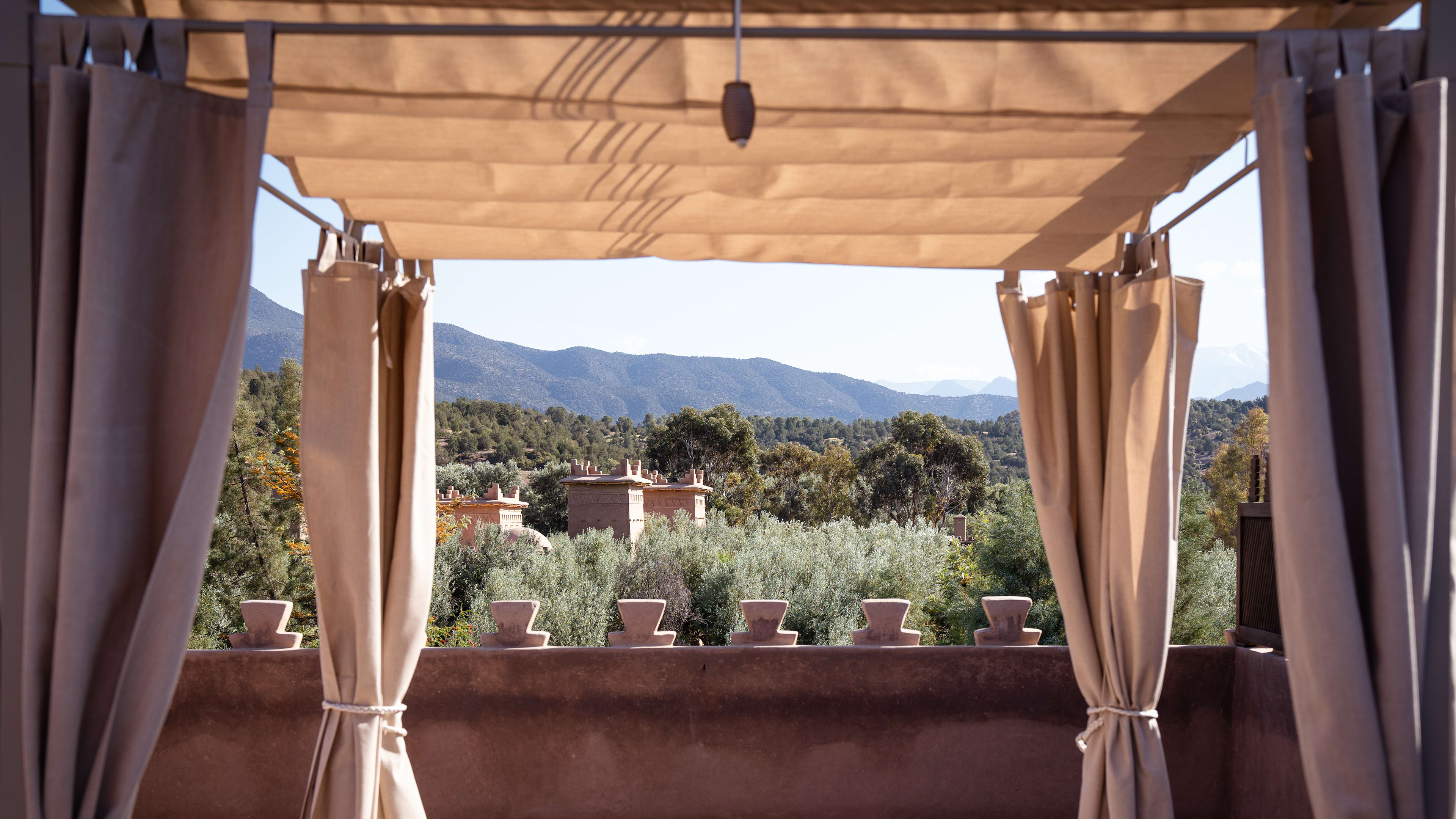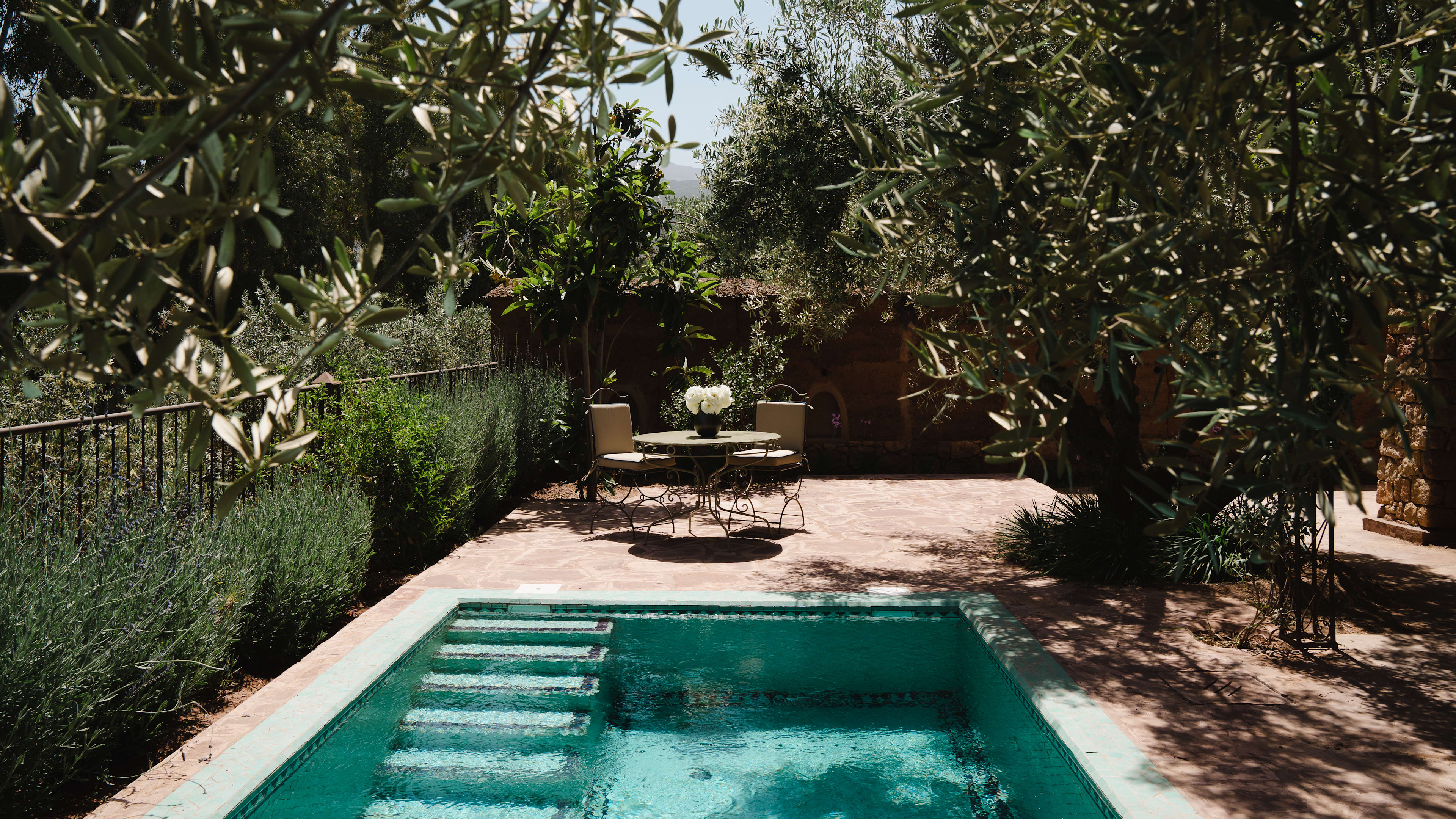 There are just nine pavilions, each fittingly named after a dominant plant here, blown like seeds across the estate. Each is cocooned in its own private walled garden with a courtyard where you can watch the sun set over the Atlas and a day-bed on the roof for sunbathing. Everything here conspires to make your stay as romantic as possible, and Moroccan craftsmanship comes to the fore – attention has been utterly lavished on detail: zouak doors as intricately etched as Arabic script, carved plaster, mashrabiya screens, woven rugs, leather panels, perforated lanterns, etched frames around TVs… Even the tea is rare and precious, in a beautiful wooden box from the Moroccan Botanist boutique. Plus, important pieces from the Prince’s collection of art and antiques have been moved in to add the personal touch that pervades throughout the retreat. There are no let-downs in the bunch, but our picks are the three Pavilions with Private Pools (Lavender, Lantana or Eucalyptus), each of whose private pool comes with a spectacular panoramic view of Atlas peaks.