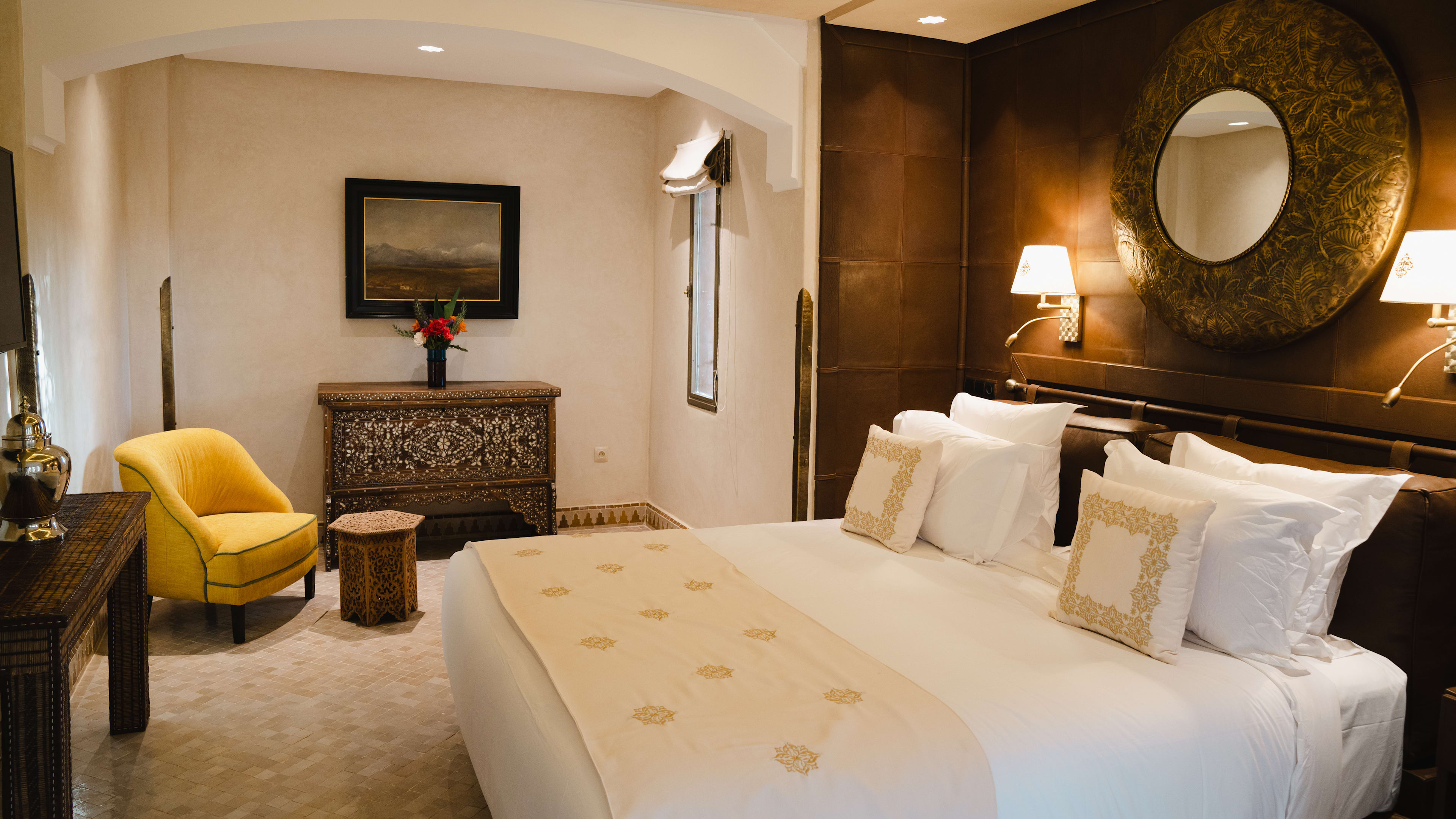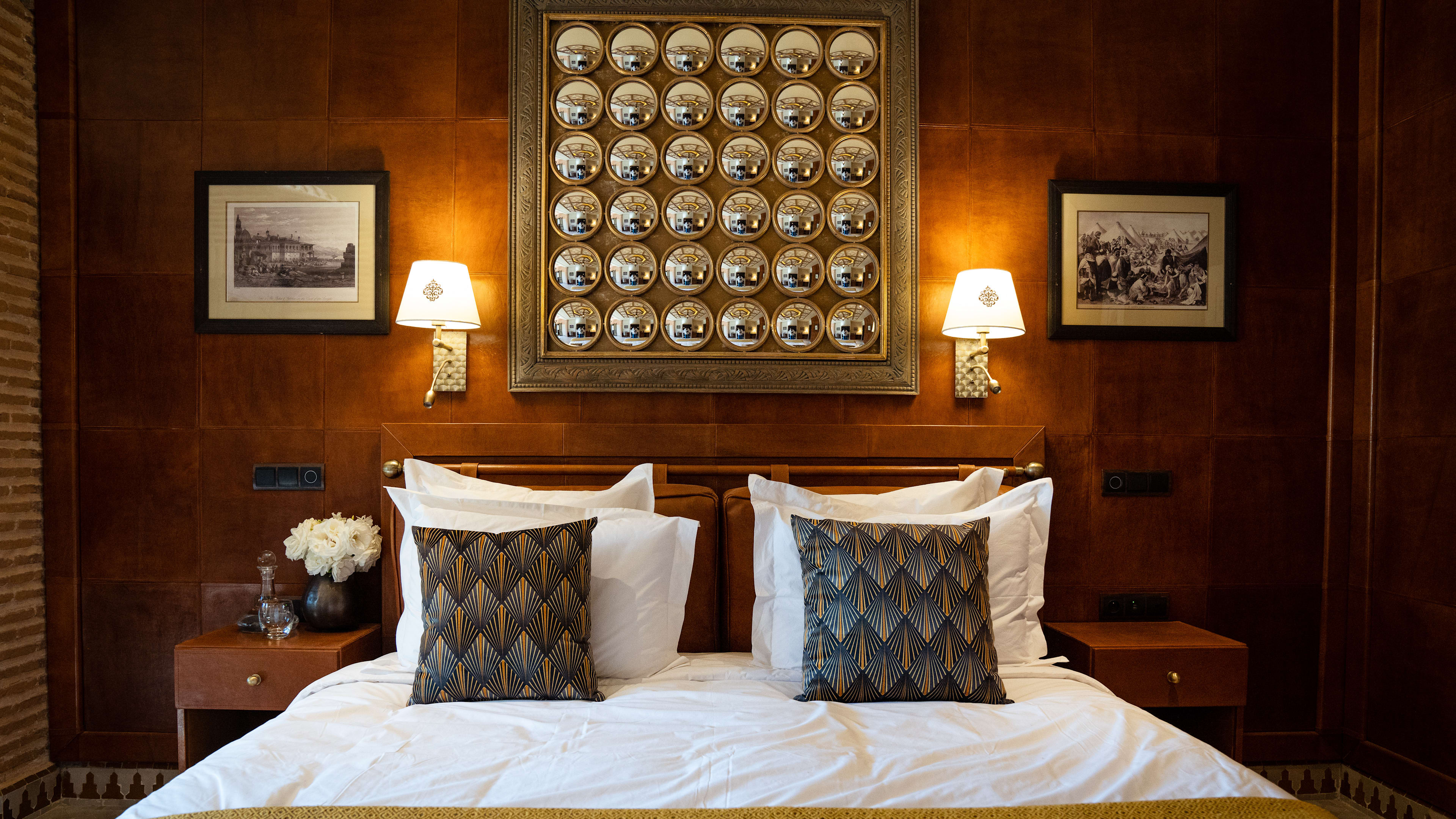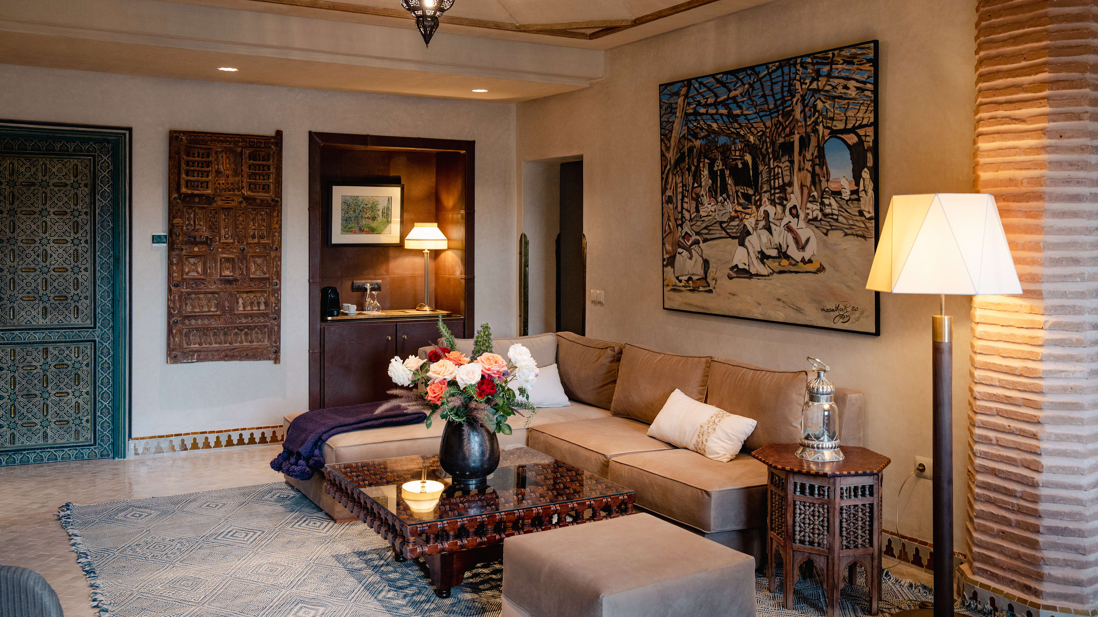 Being built on a former olive farm, and blessed with thriving kitchen gardens, the hotel restaurant is able to keep both the produce and menus deliciously fresh (and provide lashings of liquid gold to dunk pillowy flatbreads into), shifting with the season. Dishes dabble in flavours from both sides of the Med – with plenty of enticing sweet-savoury combos typical of the region – you might have the likes of surf ’n’ turf briouates, crab tartare with tropical fruit, beef-and-date tagine or rosemary-pimped monkfish skewers. For most of the year, tables are set under a wisteria-entwined pergola as the sun sinks behind the Atlas, but the hotel’s restaurant also has a dining room as elegantly dressed and thoughtfully crafted as your pavilion – hung with early-18th-century art and engravings, coated with colourful zellige and bejmat tiling – with a fireplace for chillier nights.